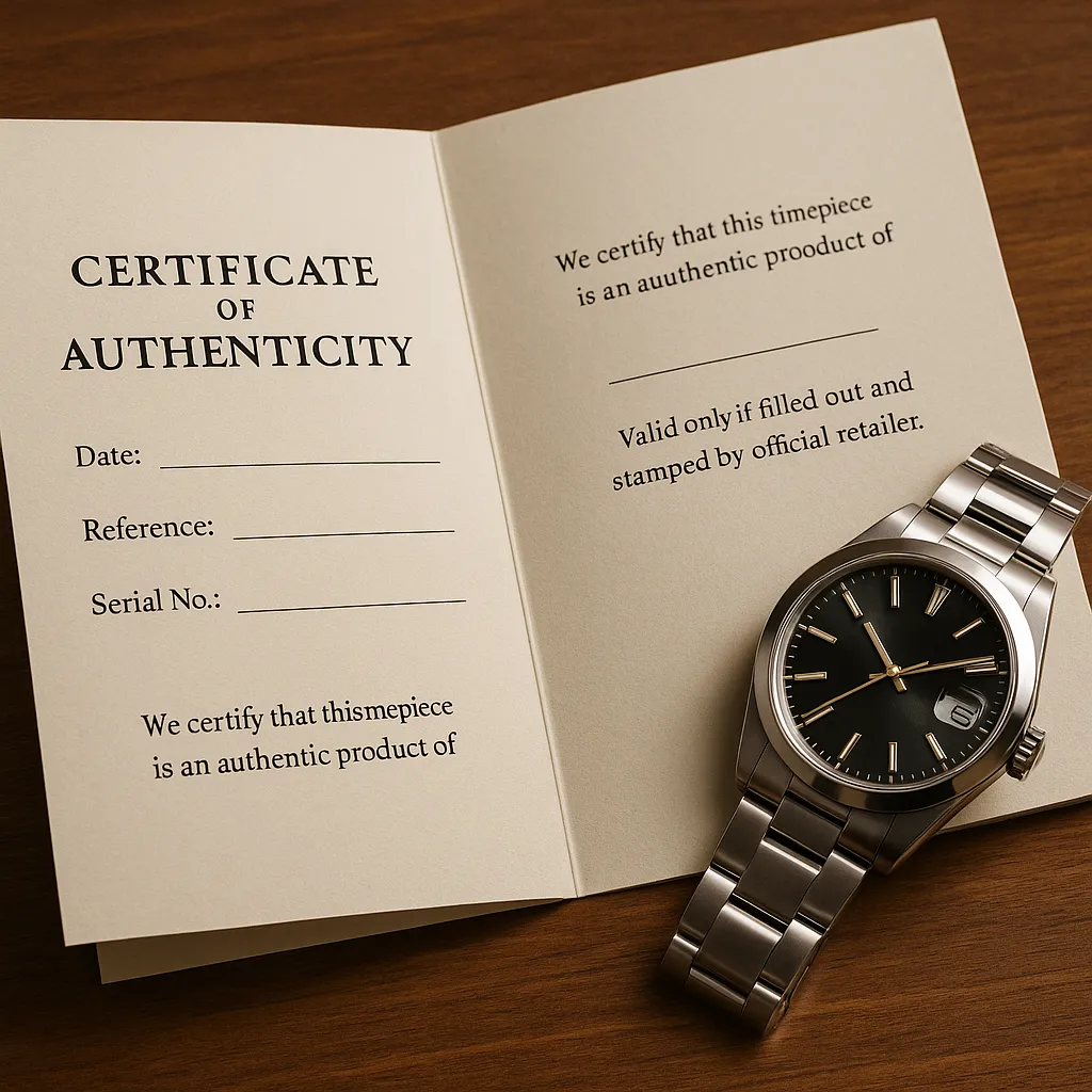 A2. 꼭 그렇지는 않아요. 가품 보증서도 정교하게 위조되는 경우가 있어요. 보증서 내용과 시계 시리얼이 일치하는지 반드시 확인해야 해요.